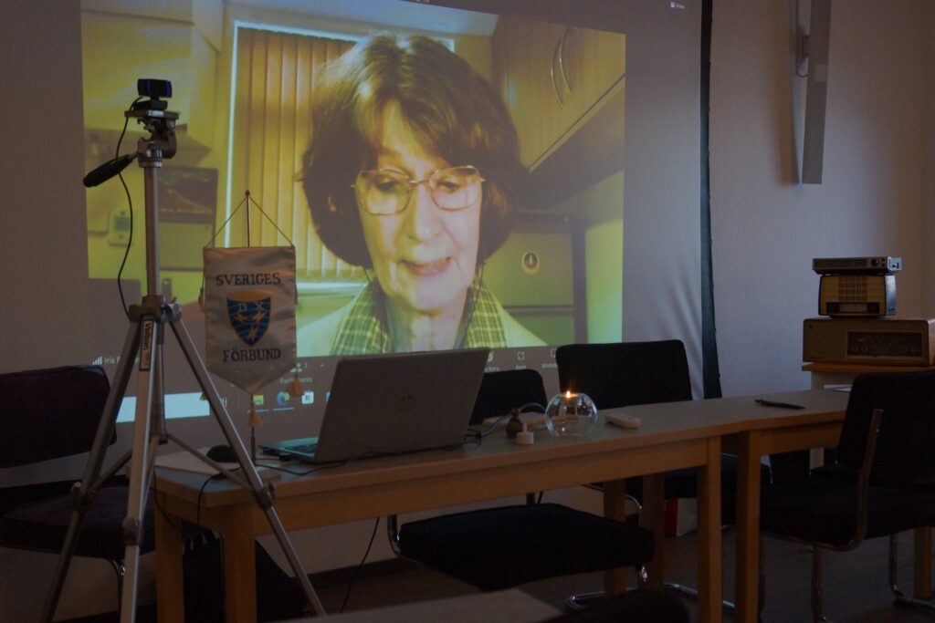 Efter en hel del föredrag under lördagen tillsammans med en historisk underjordisk vandring på fästningen. Bland föredragen märkes Håkan Lindberg som berättade om Sölvesborgssändaren lite historisk samt hur det ser ut idag och vad det skulle krävas för att få igång den igen. Efter kvällsmaten var det dags att koppla upp Iris Rhodes som mindes Sonja och sa några fina ord till hennes minne.