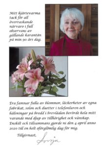 Den 4 April så fyllde vår älskade Sonja Persson 90 år, vi i SDXF och DX-Vännerna gratulerade Sonja med en bukett blommor på högtidsdagen. Sonja har alltid haft ett gott hjärta till oss dx:are och vi med henne.